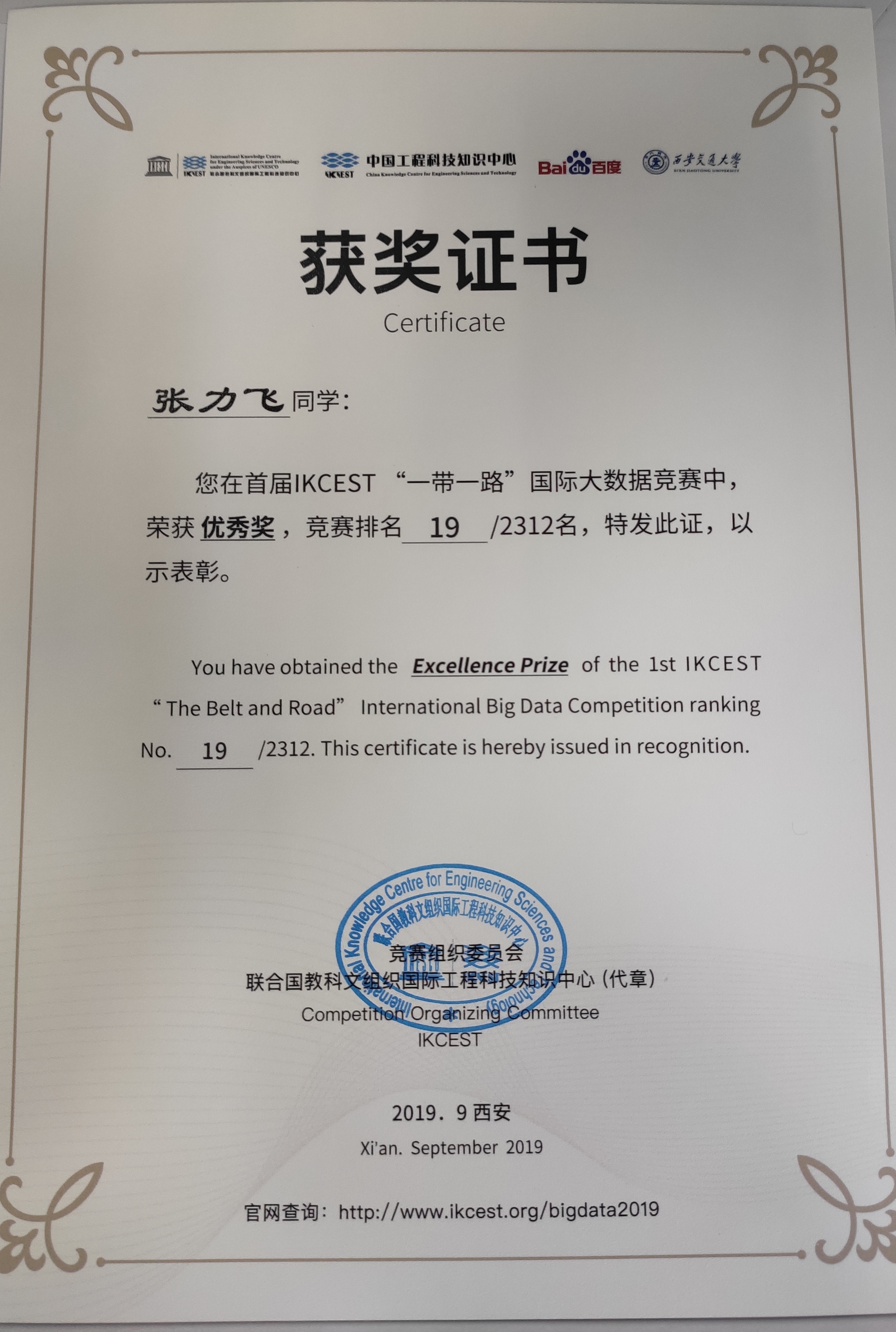 此方案最终取得初赛4/2312,决赛19/100,最终取得此次比赛优秀奖成绩。